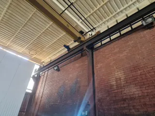 Puente grúa de uso industrial, ideal para almacenes o talleres. - Estructura metálica robusta. - Sistema de poleas y motor. - Diseñado para cargas pesadas.son dos dos puentes una de 9 metros par 5T y otro de 29 metros también para 5T