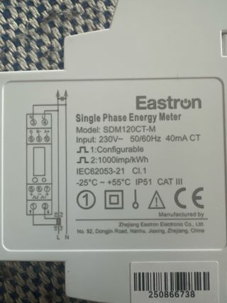 Medidor de electricidad SDM120CT. - Cumple con la norma IEC62053-21 Clase 1.0. - Soporta 230V 40mA 50/60Hz. Tengo 50