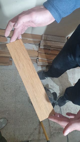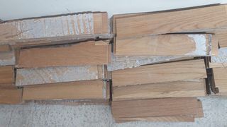 Lote de tablillas de madera de roble recién retiradas del suelo con adherencias de cola en la parte oculta, ideales para suelo de parquet. - Material: Madera de roble. - Uso: Instalación de suelos de parquet. Precio a convenir. No todo el suelo esta en condiciones optimas, sobre 112m2 de vivienda el 60% sería útil. Ubicación: Alicante Entrega en mano.