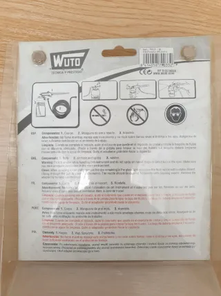 Pistola aerógrafo de la marca WUTO, modelo Hobby. - Incluye botella de difusión. - Manguera enrollada. - Boquillas y accesorios.