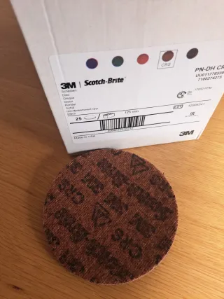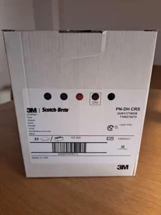 Caja de 25 discos Scotch-Brite 3M. - Modelo: PN-DH CRS - Diámetro: 125 mm - Máximo RPM: 12000 - Fabricado en USA