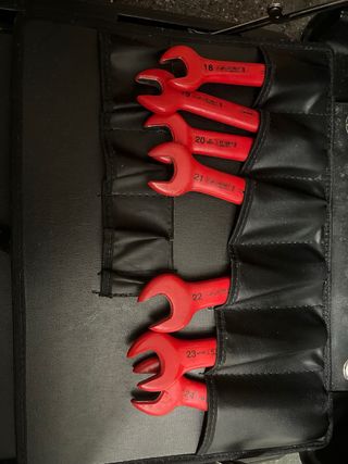 Kit de herramientas aislantes para trabajos eléctricos de hasta 1000V. - Incluye destornilladores, alicates y juegos de llaves. - Mango ergonómico para mayor comodidad. - Herramientas de alta calidad para electricistas. -Se vende en pack completo, marca wurth practicamente para estrenar.