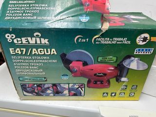 Amoladora de sobremesa CEVIK E47/AGUA. - Modelo: E47/AGUA - Marca: CEVIK - Potencia: 130 Watts - Velocidad: 2800 RPM / 140 RPM - Voltaje: 230 V - Peso: 10 Kg - Con luz integrada.