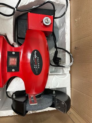 Cortadora circular industrial para textiles. Ideal para cortes precisos en tejidos. - Diseño robusto para uso profesional. - Mango ergonómico para un mejor agarre. - Cable de alimentación incluido. Cortadora de disco para tela. Herramienta muy ligera y versátil para cortes curvos y capas medias. A tener en cuenta: La máquina funciona pero requiere una revisión eléctrica, ya que tiene el cable conectado mediante una regleta externa y cinta protectora (ver imágenes). Se vende tal cual para alguien que sepa ponerla a punto o para piezas.