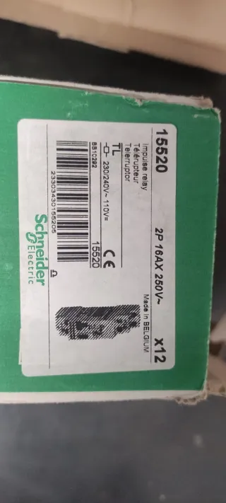 Lote de 12 telerruptores Schneider en su caja. Telerruptor TL, 2p 16A, 230..240 V CA/110 V CC. Aplicación del relé: control remoto - gama de producto: TL - nombre corto del dispositivo: TL - número de polos: 2P - composición de polos de contacto: 2 NO - tipo de red: CA - tensión del circuito de control: 110 V DC, 230...240 V CA 50/60 Hz. No separo. Se vende la caja con 12 telerruptores. Los de la foto.
