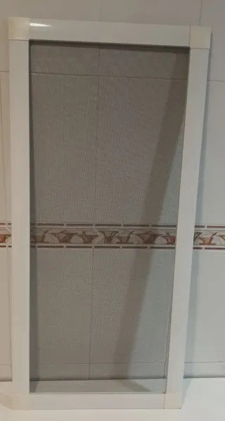 Mosquitera fija de ventana con perfil blanco