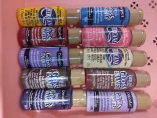 Gran variedad de pinturas acrílicas de la marca DecoArt Americana. - Variedad de colores y acabados. - Ideal para manualidades y proyectos artísticos. - Envase de 2 oz y 59 ml. Precio unidad,2 botes por 5€