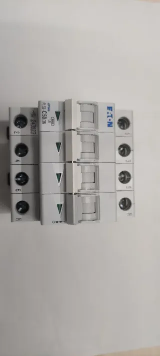 Magneto térmico Eaton de 4 polos y 50 Amperios. Dispongo de dos unidades. Precio según cantidad: 1 Magnetotermico 50€. 2 Magnetotermicos 85€. - Modelo: PLS6-C50/3N - Referencia: 243023 - Marca: Eaton - Número de polos: 4 - Intensidad: 50A