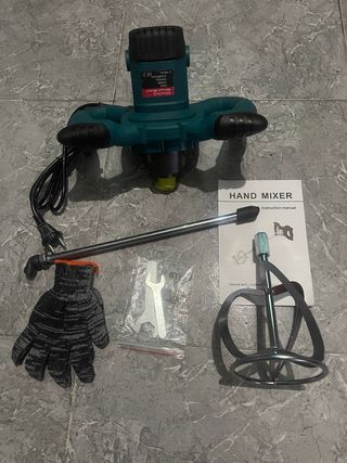 Amasadora de cemento potente y lista para usar. Incluye todos los accesorios. - Motor de 2100W. - Incluye varillas mezcladoras. - Incluye guantes de protección. - Incluye llave de montaje. - Manual de instrucciones.