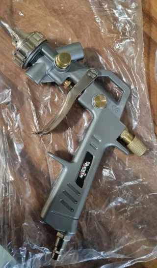 Pistola de pintar revestimientos Cevik 6000cc, usada pero en buen estado. Incluye dos pistolas: una pistola de gotelet y una pistola para esmaltar y barnizar. - Se incluye el vaso plástico. - Está en buenas condiciones, lista para usar. Pistola de gotelet: 20€ Pistola de esmaltar y barnizar: 15€ Las dos por 30€