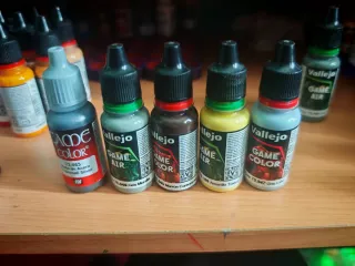 Lote de botes de pintura Vallejo Game Air y modele color solo está semanas %10 de descuento usados con un - nuevos con un + Color: Azul Eléctrico - Color: Azul Imperial- Color: Gris Neutral- Color Amarillo Dorado+ Color Bronce pulido+ Color Piel+ Color Marrón escrofuloso+ Color Verde oscuro+ Color Cobré bruñido+ Color Azul elfico+ Color Bermellón+ Color Verde camuflaje+ Color Azul imperial - Color Gris muralla - Color Marrón carbonizado - Color Gris lobo- Color Amarillo tóxico - Color Malla de acero -