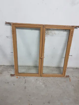 Vendo ventana de madera con marco cristal transparente y postigo o contraventana. Mide 98 de ancho por 115 cm de alto. Hago envios