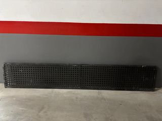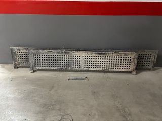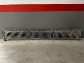 Conjunto de rejillas metálicas para exterior, diseñadas para ser instaladas bajo viviendas, ventanas garaje o local - Diseño con múltiples aberturas cuadradas. - Estructura de hierro galvanizado robusto y duradero. - Color gris forja. -Dos tamañoss Estan sucias de barro por obra. Desmontadas por reforma integral de vivienda. Medidas 1- bastidor 1,94 x 0,38 cm + 0,03 cm de tapa superior Hoja 1,80 x 0, cm. 2- Bastidor 2,69 x 0,39 cm + 0,03cm de tapa superior Hoja 2,56 x 0, cm