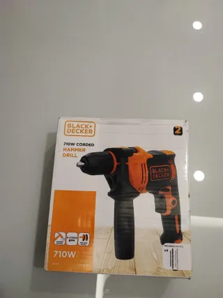 Se vende taladro Black+Decker de 710W con función percutor. Ideal para trabajos en el hogar. - Potencia: 710W - Velocidad sin carga: 0-47600 RPM