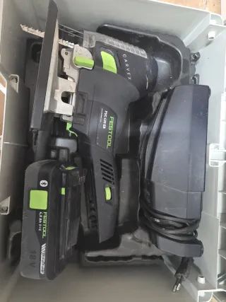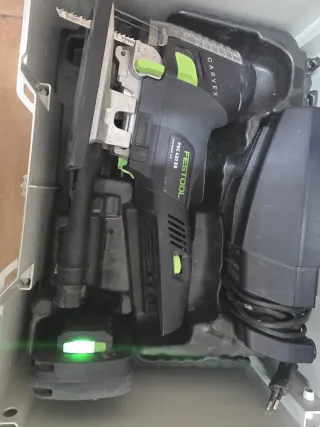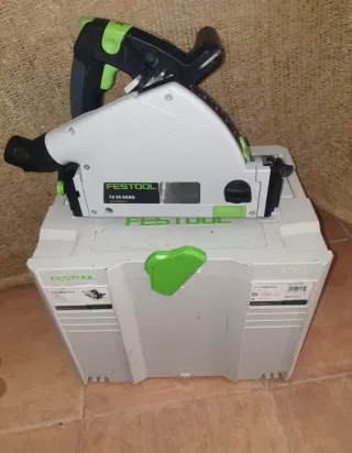 Sierra circular Festool en color negro y verde, presentada en su maletín. - Sierra circular. - Maletín de transporte.