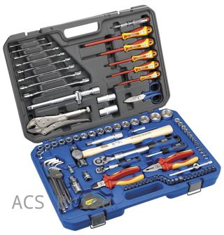 MALETIN CON HERRAMIENTAS COMBINADAS 83 PIEZAS ALYCO 170765 Maletín rígido de pequeño tamaño con multitud de herramientas de apriete en distintas modalidades (llaves, llaves hexagonales, alicates, puntas de atornillar, vasos hexagonales) Herramientas en Acero al Cromo- Vanadio, lo que les da dureza y larga vida, no redondeandose los cantos El acabado por tratamiento térmico y cromado evita la oxidación y alarga la vida y efectividad de las llaves El maletín esta especialmente diseñado y estan perfectamente preparados los orificios para las herramientas, pudiendo controlar las herramientas que faltan. Maletín de plástico rígido,...