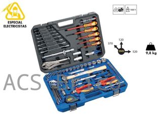 MALETIN CON HERRAMIENTAS AISLADAS 98 PIEZAS ALYCO 101460 Solución completa para personal con necesidades de desplazamiento para hacer los arreglos precisos. Conjunto de alicates, llaves de apriete, destornilladores y muchas mas herramientas de primera calidad con una caja amplia. Muy apta para personal que trabaja en circuitos eléctricos que pueden estar bajo tensión. Herramientas aisladas certificadas. Estuche fácil de transportar y con cierres y bisagras que evitan la apertura accidental. Conjunto de herramientas muy completo para aprietes con llave fija, con carraca, con destornillador y llave allen. Corte y manipulación c...
