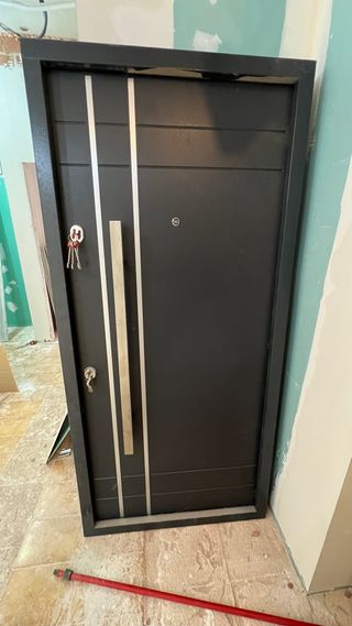 POR FAVOR: Lea y vea bien TODO el anuncio y TODAS las fotos. Puerta blindada de calidad. 4x llaves bombín y 4x llaves FAC. Hoja puerta: 202 x 82 cm. Apertura derecha (desde fuera). 3 puntos de cierre. Para montar en el hueco de premarco de su antigua puerta. Contenido: galces, herrajes y molduras. Premarco NO incluido. Bombín, cerrojo y cerradura 100%. De segunda mano, bien conservada, conforme edad/uso. Solo recogida. Precio NO negociable: 125€. *xx*