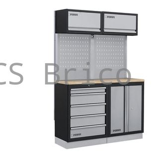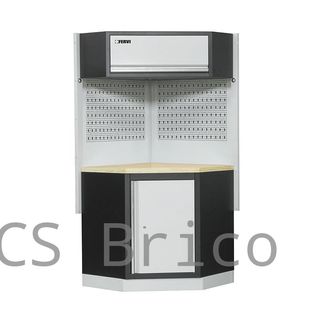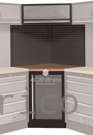 MODULO ESQUINERO DE CONJUNTO DE ARMARIOS DE TALLER S/MADERA 192841 DESCRIPCION: - Armario superior y armario base sólidos muy válidos par ambientes de taller con herramientas pesadas. - El armario base, al disponer de cerradura, permite guardar herramientas valiosas con seguridad. - La base de madera permite colocar herramientas y realizar trabajos sobre ella, por su firmeza y rigidez. Los paneles perforados permiten colgar herramientas con ganchos y los pilares fijan y dan rigidez al conjunto. - Forma parte de los conjuntos modulares y pueden realizarse combinaciones de armarios y módulos según necesidades. - Conjunto enviado...