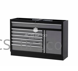 BANCO TALLER BASE 1360 MM ALYCO 192878 DESCRIPCION: - Banco base con 7 cajones y puerta lateral sólido muy válido para ambientes de taller con herramientas pesadas. - Al disponer de cerradura, permite guardar herramientas valiosas con seguridad. - El banco disponen de 7 cajones de tres tamaños con guías de apertura con rodamientos a bolas, lo que permite una apertura y cierre suave. Además la cerradura bloquea los 7 cajones a la vez. - Forma parte de los conjuntos modulares y pueden realizarse combinaciones de armarios y módulos según necesidades. - Permite colocar encima una base de trabajo, sea de madera o de acero inoxidabl...