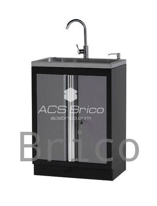 ARMARIO TALLER BASE 2 PUERTAS Y GRIFO ALYCO 192855 DESCRIPCIÓN: - Armario base con fregadero, 2 puertas con cerradura y 2 baldas interiores, sólido y muy válido para ambientes de taller con herramientas pesadas. - Al disponer de cerraduda, permite guardar herramientas valiosas con seguridad. - El interior permite modificar la altura de las baldas, permitiendo una distibuición que permite guardar herramientas voluminosas. - Forma parte de los conjuntos modulares y pueden realizarse combinaciones de armarios y módulos según necesidades. - El grifo y el fregadero vienen incluidos. - Incluye jabonera en un lateral (con botella). -...