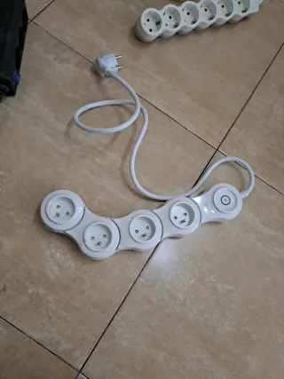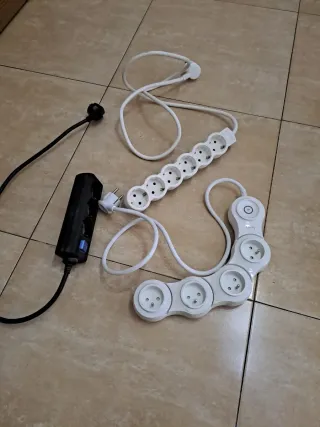 Lote de tres regletas de enchufes, ideales para ampliar tus conexiones eléctricas. - Una regleta con 6 enchufes. - Otra regleta con 4 enchufes movible y con boton de apagado - Un alargador con 3 enchufes con boton de apagado Se venden las tres juntas