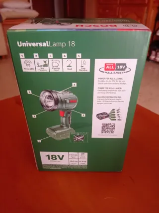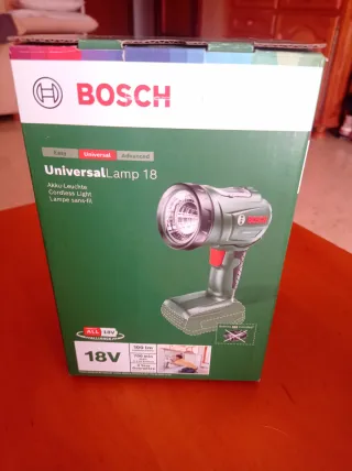 Linterna de trabajo Bosch UniversalLamp 18V. - Modelo: UniversalLamp 18. - Voltaje: 18V. - Potencia lumínica: 100 lm. - Duración: 700 min. - Incluye 3 años de garantía.
