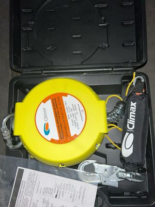 Dispositivo anticaída retráctil de la marca Climax. - Modelo: CLIMAX 15M-A - Longitud: 15 metros - Peso: 7,55 kg - Certificación: EN 360:2002