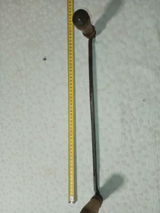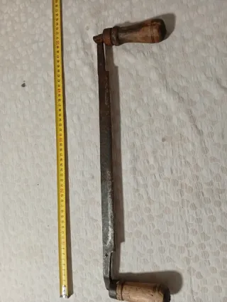 Sierra de arco con hoja de metal y mango de madera. - Hoja de sierra. - Marco de metal. - Mango de madera.