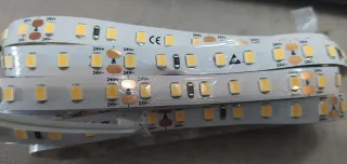 Tiras de LED de 24V, ideales para iluminación. - Marcadas con 24V+ y 24V- para fácil conexión. - Sello CE visible.