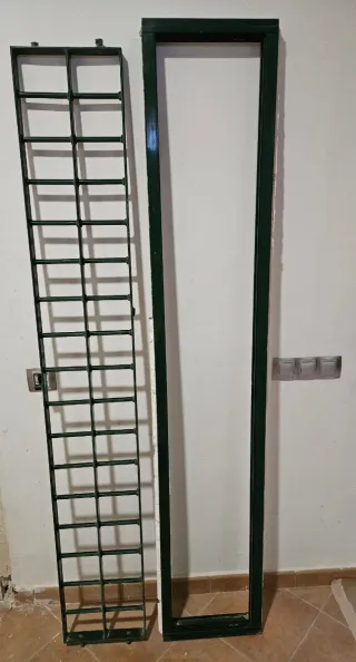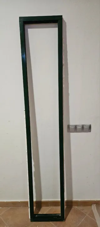 Marco de aluminio para ventana corredera. - Material: Aluminio. - Color: Verde oscuro. Medidas 192 de largo por 35 de alto. Se vende con reja a juego