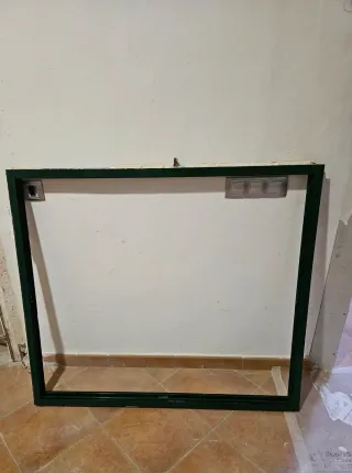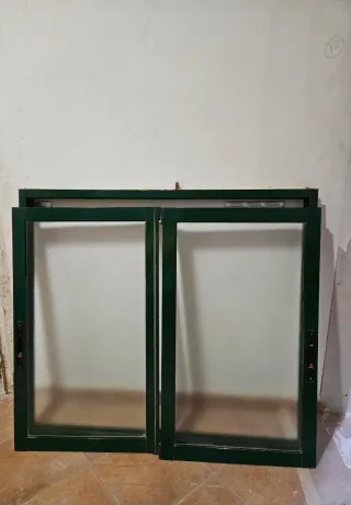 Marco de ventana corredera de aluminio en color verde. - Material: Aluminio. - Color: Verde. - Tipo: Corredera. Medidas: 117 de largo por 103 de ancho