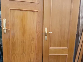 Se venden dos puertas de madera con un diseño clásico y elegante. - Acabado en madera de roble. - Manillas doradas incluidas. - Diseño con paneles.