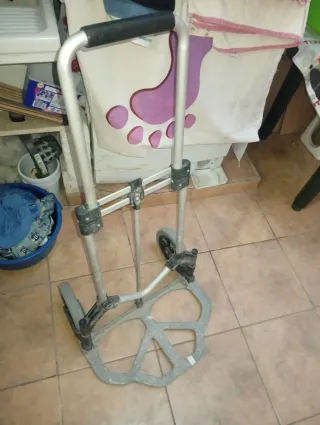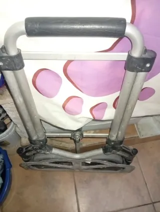 Carretilla plegable de aluminio, ideal para transportar objetos. - Estructura de aluminio. - Mango ergonómico. - Ruedas resistentes.