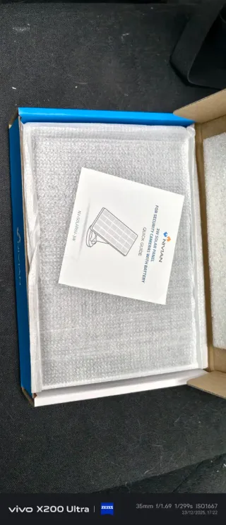 Panel solar Nivian de 3W diseñado para cámaras de seguridad con batería. Es resistente a la intemperie y cuenta con salida MicroUSB. - Potencia: 3W - Conexión: MicroUSB DC5V Output - Resistencia: Weatherproof (a la intemperie) - Uso: Para dispositivos con batería