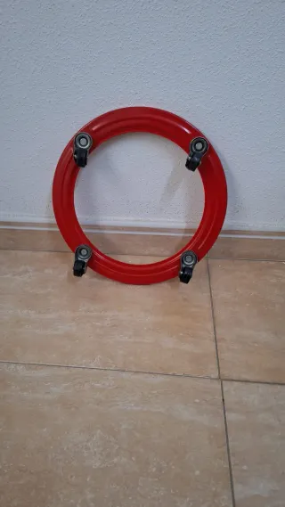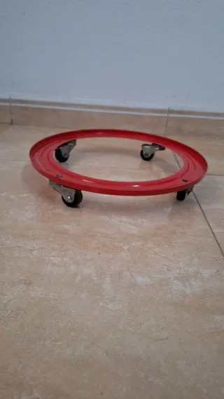 Base circular con ruedas para facilitar la movilidad de bombonas. - Color rojo. - Cuatro ruedas giratorias. - Material: metal resistente En perfecto estado