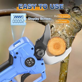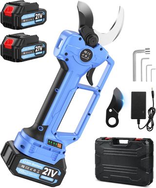 Tijeras Eléctricas Profesionales De 60 MM Cuentan Con Una Apertura De Hoja Ajustable En Cuatro Niveles, Motor sin escobillas de 1500W, Baterías 4.0 Ah x 2, Para Diversos Escenarios De Poda 785 - Color azul y negro. - Diseño ergonómico para un agarre cómodo. - Indicador de carga de batería con 4 niveles. - Incluye maletín de transporte.