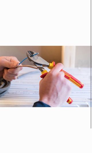 Alicate de corte diagonal Stanley con aislamiento VDE para 1000V. - Mango ergonómico bicolor rojo y amarillo. - Fabricado en acero de alta calidad.