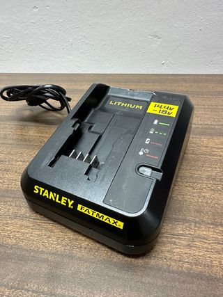 Cargador de baterías Stanley Fatmax para herramientas de litio. - Compatible con baterías de 14,4V y 18V. - Indicadores LED de carga.