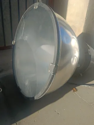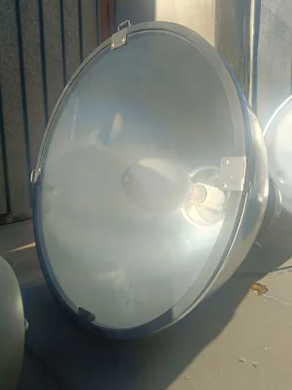 ¡OFERTA IMPERDIBLE! ⭐⭐⭐⭐⭐ Vendo 4 unidades de focos industriales marca IEP. 400W 230V 50MZ. Perfectos para taller, nave o cualquier proyecto que necesite espacio. Muy potentes y resistentes, en estado impecable. Todos llevan pantalla de cristal a excepción de uno, de ahí que su último precio sea 50€ unidad. 📏 Especial atención a la medida, son MUY GRANDES, en las fotos quizás no se aprecia realmente su tamaño, lo detallo aquí: Miden 50cm de diámetro. Entrego en mano en Lleida y alrededores o envío cada uno individualmente a cualquier parte mediante Wallapop.