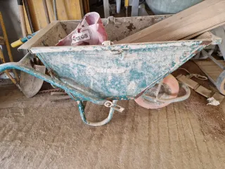 Carretilla china de obra con ruedas antipinchazo. - Color verde. - Ruedas de goma maciza.