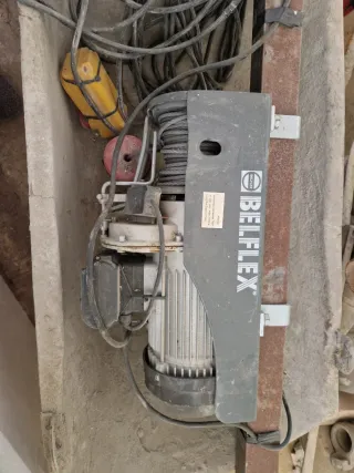 Polipasto eléctrico BELFLEX con motor. - Incluye cable de acero. - Carcasa protectora gris. - Soporte de montaje.