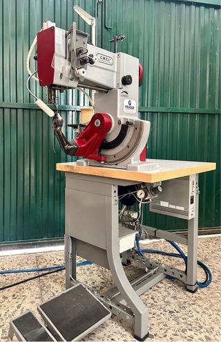 Máquina para rayar costuras y cintas. Ideal para trabajos de marroquinería y calzado. - Fabricada en metal y plástico. - Incluye pedal. - Panel de control con manómetro.