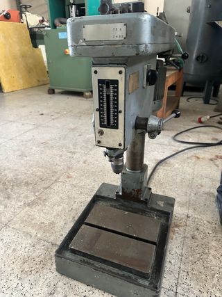 Taladro de columna marca TS 8, modelo 2495. Ideal para trabajos de precisión. - Base robusta para mayor estabilidad. - Indicador de profundidad. - Palanca de avance.