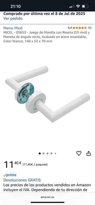 Juego de manillas para puerta de la marca Micel, modelo 05653. Son de ángulo recto y acabado en acero inoxidable. - Color: Blanco - Medidas: 148 x 53 x 70 mm - Diámetro de la roseta: 53 mm