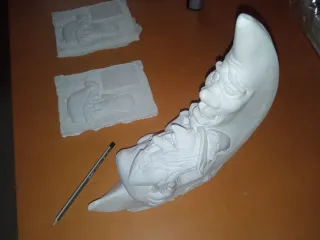 Dos figuras de escayola listas para decorar y pintar. - Figuras con relieve. - Base con textura de madera.