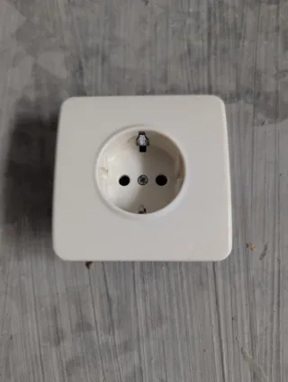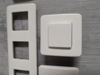 Enchufe de pared de color beige, con un diseño cuadrado y bordes redondeados de la marca Niessen. Son 2 bolsas de interruptores quitados en la reforma. Se venden todos juntos. Negociamos el precio, pero aproximadamente 50 céntimos cada enchufe/Interruptor.