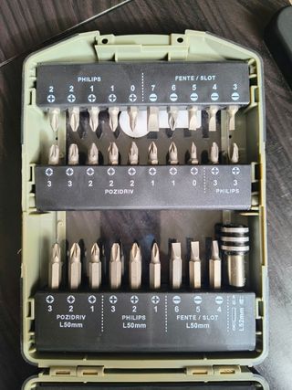 Estuche de puntas de destornillador Tivoly (60 piezas). Calidad profesional superior, muy resistente. NUEVO, SIN USO. Contenido del kit: Puntas L25mm: Planas, Phillips, Pozidriv, Torx, Torx Tamper (seguridad), Hexagonales y Cuadradas. Puntas largas L50mm: Selección de Torx Tamper, Hex, Planas, Pozidriv y Phillips para difícil acceso. Adaptador magnético: Sujeción rápida L52mm. Estuche robusto: Con organizador serigrafiado para cada punta. Ideal para trabajos que requieren precisión y durabilidad. Acero de alta resistencia, nada que ver con los kits básicos de bazar. #bricolaje #puntas #taller