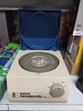 Centrífuga de sobremesa para microhematocrito, tienda de segunda mano poeta infante Don Juan Manuel 25 Almería Tel 666046042 - Modelo: Mod. 61 - Marca: Gricel - Diseño compacto y robusto.