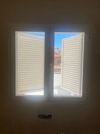 Ventana corredera de aluminio. - Marco de aluminio blanco. - Dos hojas correderas. - Medidas 140x123 cm. - Con persiana. - Mosquitero a medida. - Doble cristal climalit plus. - Cristal con protección solar. - Venta disponible hasta 22 de marzo.